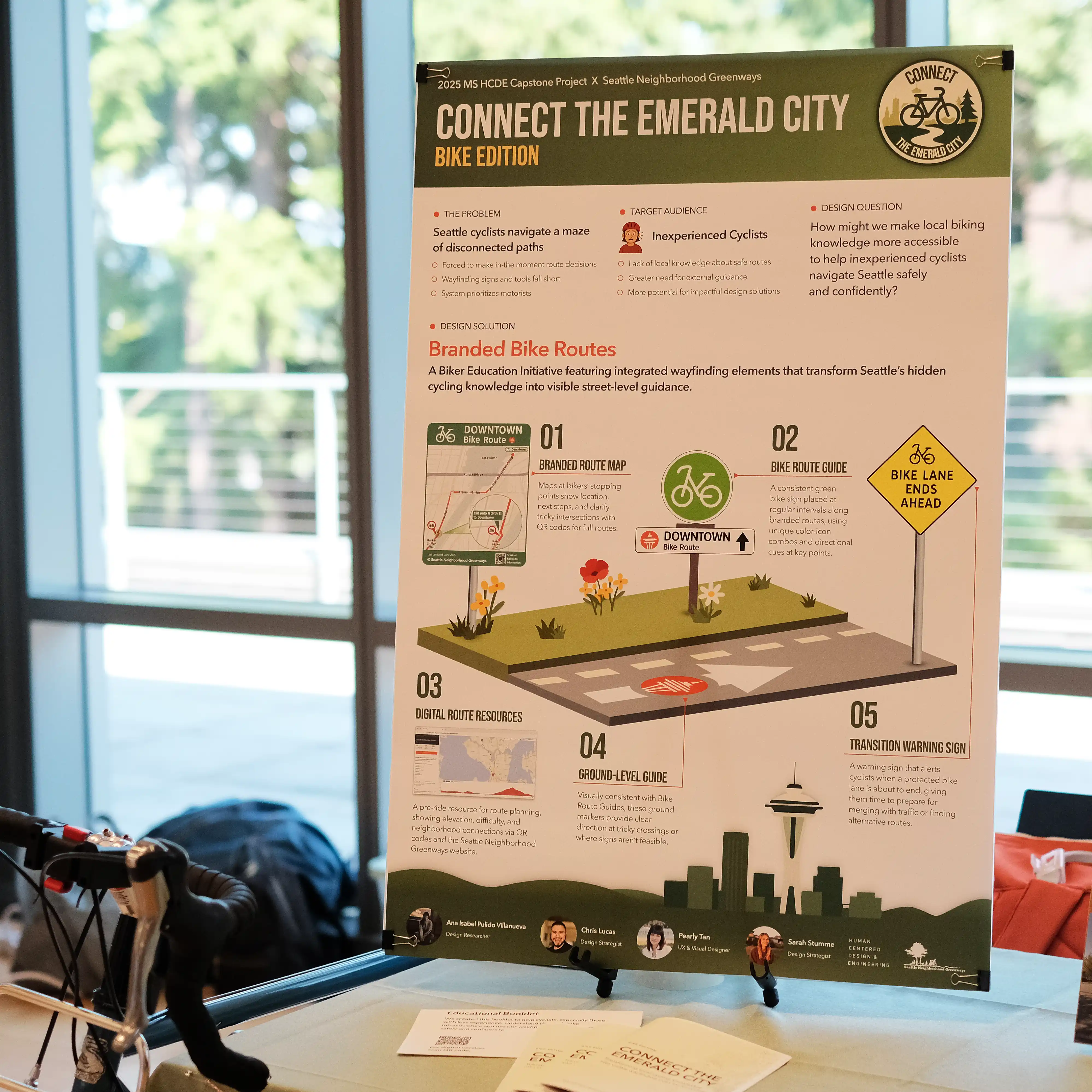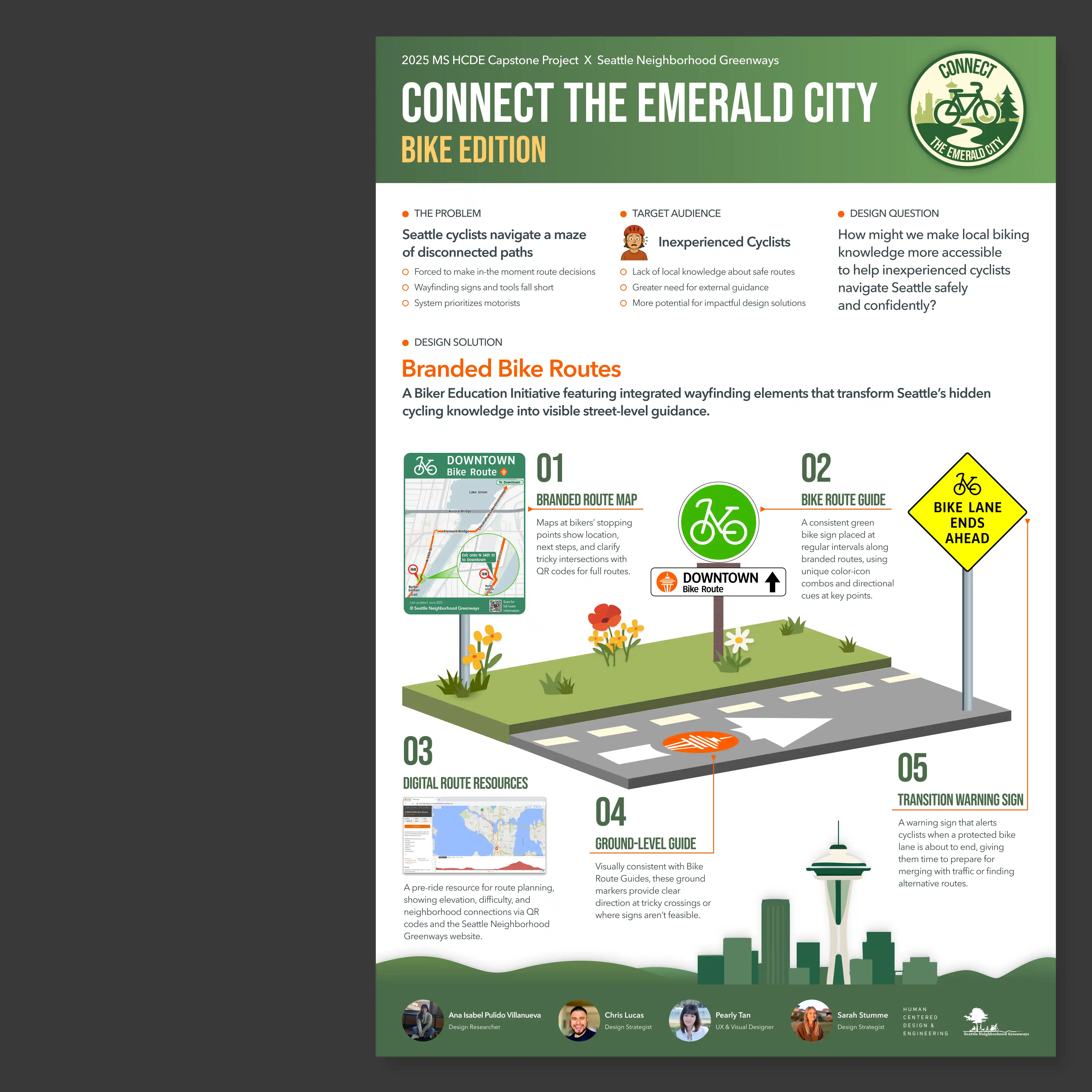 Capstone poster: an integrated wayfinding system designed to help inexperienced cyclists navigate Seattle safely
